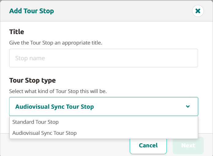 Lorsque vous ajoutez du contenu à un arrêt, vous pouvez choisir de télécharger des données audio ou d'utiliser les options AI avec la synthèse vocale. Répétez le processus pour autant d'arrêts que nécessaire pour compléter la visite.