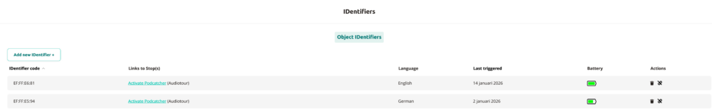 Ce bouton vous permet d'ajouter un ou plusieurs identificateurs, de sorte que vous puissiez les relier facilement à l'arrêt de votre choix. Les identifiants ajoutés seront répertoriés dans l'aperçu.