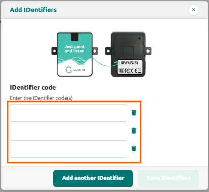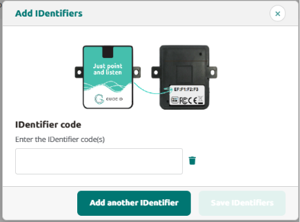 Cliquez sur Ajouter un nouvel IDentifier+ et remplissez les codes qui se trouvent au dos de l'identifiant. Le code doit être inscrit dans un XX:XX:XX:XX format.