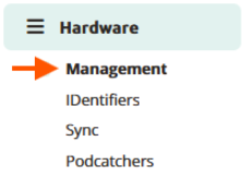 Hardware management gives you a quick overview of the Podcatcher-, Sync device- and tour status and can be accessed by clicking Management on the sidebar of the Platform.